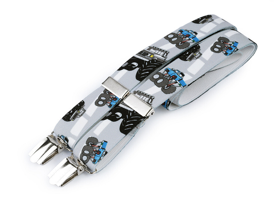 Dětské šle o délce 70 cm a šířce 2,5 cm s různými potisky, které se neodírají ani neloupou. Originální balení obsahuje 10 ks šlí v různých barvách a motivech. Jedná se o kvalitní český výrobek. Přichycují se pomocí kovových žabek, jsou vyrobené ze 100% polyesteru.