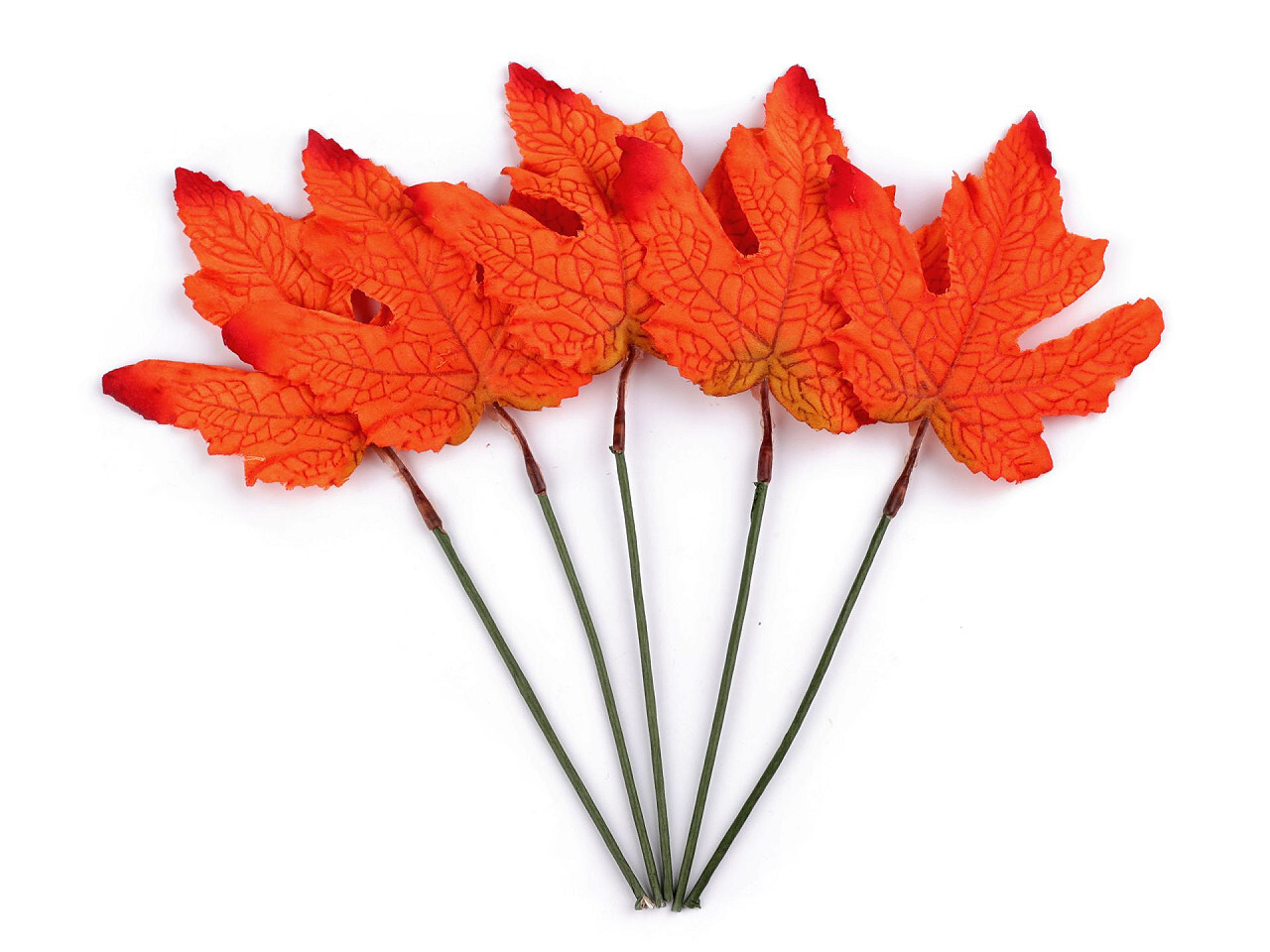 Umělý list na drátku k aranžování - 5 ks - 2 oranžová