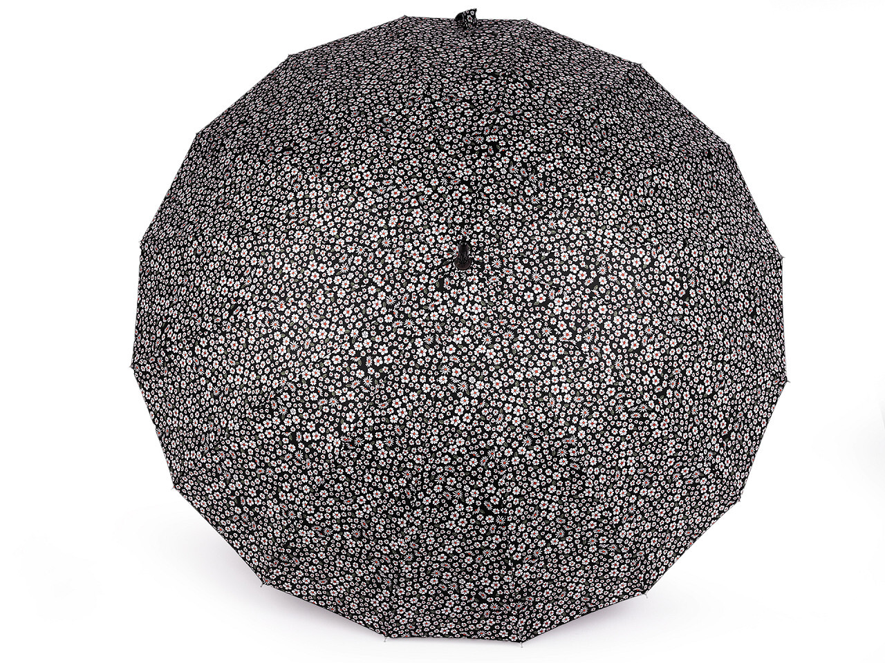 Velký dámský vystřelovací deštník se vzorovaným potahem drobných květů vás spolehlivě ochrání před nepřízní počasí. Skládá se z 16 výsečí, díky kterým se deštník řadí mezi luxusní kousky. Konstrukce je vyrobená z pružných lamel zajišťujících vysokou pevnost a stabilitu. UV filtr vás ochrání před slunečním zářením. Deštník má klasickou tyč zakončenou pevnou rukojetí.