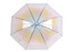 Průhledný deštník s barevným přechodem ombré bude slušet dívkám i ženám. Průhledné jsou horní 2/3 deštníku, pruh dole je bílý - průsvitný. Deštník je vystřelovací, konstrukci má z kovového drátu a pružných lamel, tvoří osm polí. Díky nim je velice pevný, neohne se ani za největšího nečasu. Klasická tyč je zakončená pevnou rukojetí.