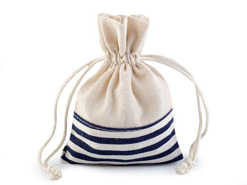 Dárkový pytlík 10x13 cm lněný s proužky - 10 ks - 1 modrá temná