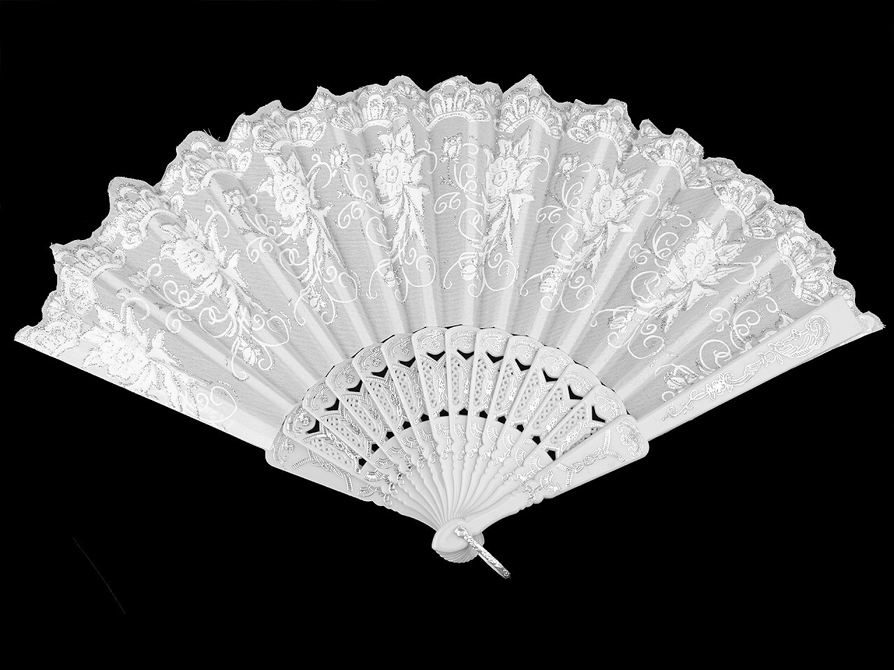 Vějíř textilní s glitry - 1 ks - náhodný vzor bílá