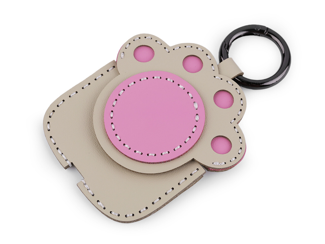 Přívěsek s kapsičkou je vyrobený z eko kůže, díky tomu má malou hmotnost. Kapsička se zapíná na patent, je plochá, vejde se do ní pár mincí, poskládaná bankovka, klíč apod. Přívěsek je ozdobený štepováním, s oblibou se nosí na batozích, taškách, kabelkách i klíčích. Nahoře má kulatou otevírací...