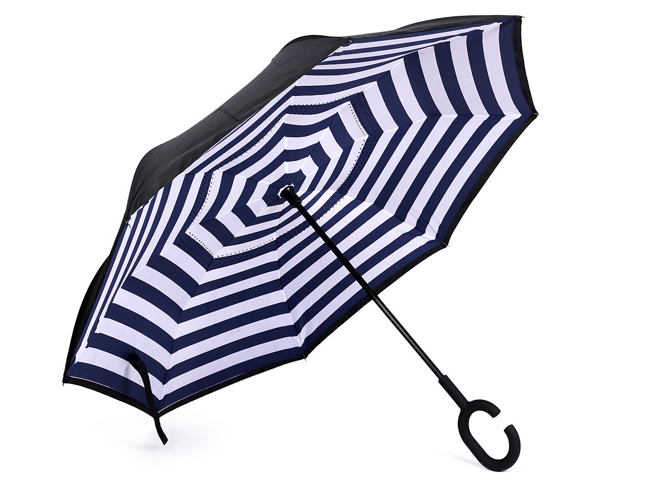 Obrácený deštník dvouvrstvý - 1 ks - 3 modrá tmavá proužky
