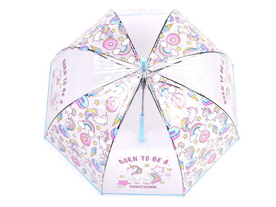 Dívčí průhledný vystřelovací deštník jednorožec - 1 ks - 4 modrá pomněnková
