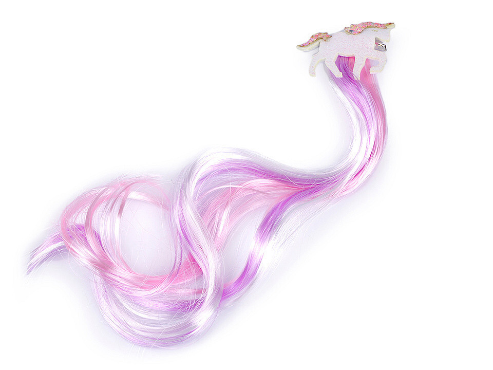 Duhové pramínky vlasů na sponce s jednorožcem potěší především malé slečny. Jednorožci jsou ozdobení glitry s opalizujícím AB efektem, díky kterým se působivě třpytí. Pramínky skvěle oživí účes. Při dětské hře na princezny jsou neocenitelným doplňkem.