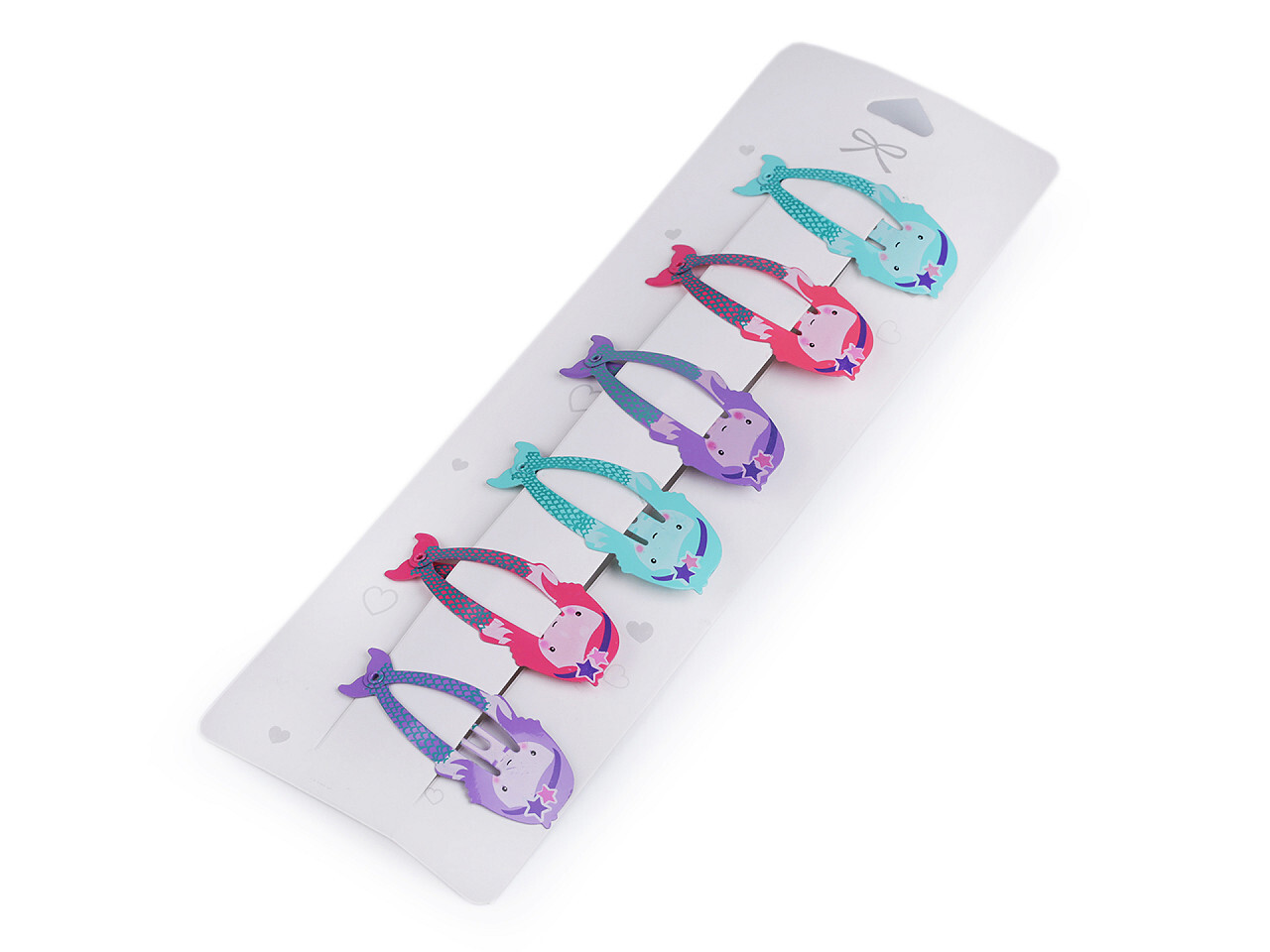 Sadu vytvarovaných sponek pukaček s potiskem si zamilují všechny malé dívky, které se rády parádí. Na papírové kartě je 6 ks sponek po 3 párech. Sponky jsou vyrobené z kvalitního materiálu, který dlouho drží svůj tvar, funkčnost i barvy. Karta je opatřená výsekem pro zavěšení a vystavení na...