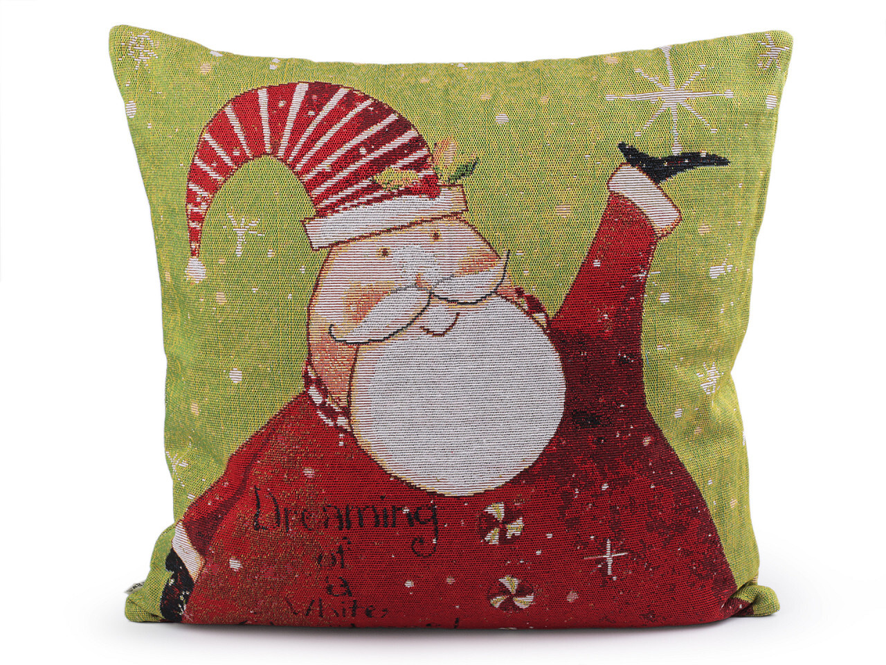 Vánoční dekorační polštář dětský motiv 45x45 cm gobelín - 1 ks - 1 zelená sv.