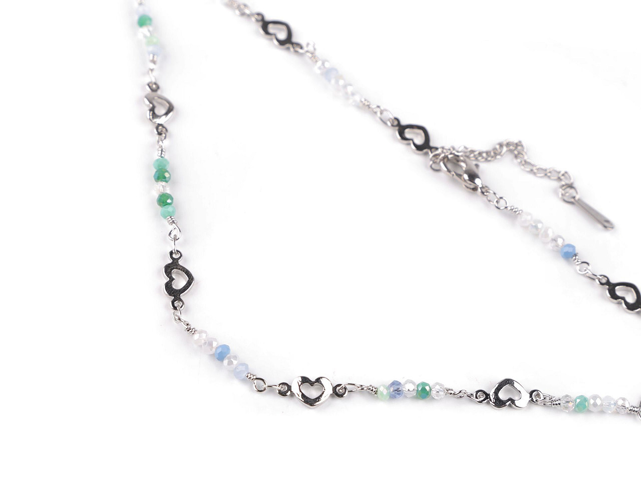 Náhrdelník z nerezové oceli se skleněnými korálky - 1 ks - 1 modrozelená platina