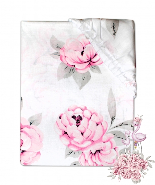 Baby Nellys Dětské bavlněné prostěradlo do postýlky - Plameňák růžový; 120x60