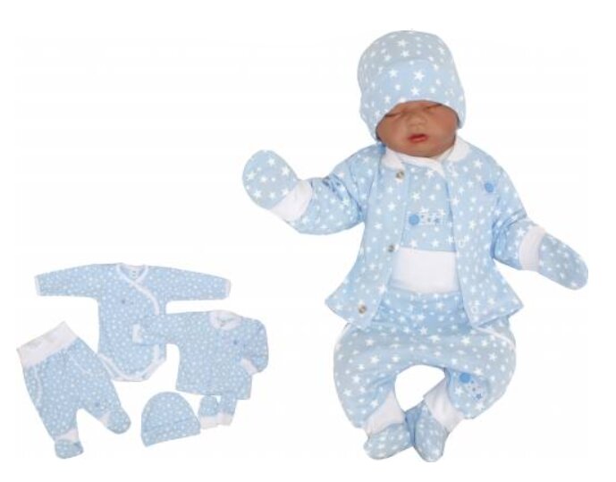 Materiál: 100% bavlna.jakost.Detailní rozměry:Body:Vel. 50 - délka 30 cm, hrudník - 16 cm x 2, rukáv 20 cm.Vel. 56 - délka 32 cm, hrudník - 17 cm x 2, rukáv 22 cm.Vel. 62 - délka 33 cm, hrudník - 19 cm x 2, rukáv 24 cm.Polodupačky:Vel. 50 - délka 34 cm, pas - 15 cm x 2.Vel. 56 - délka 35 cm, pas...
