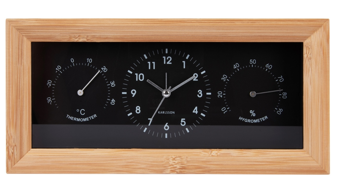 Nástěnné-stolní hodiny s teploměrem a vlhkoměrem 5925BK Karlsson 26cm