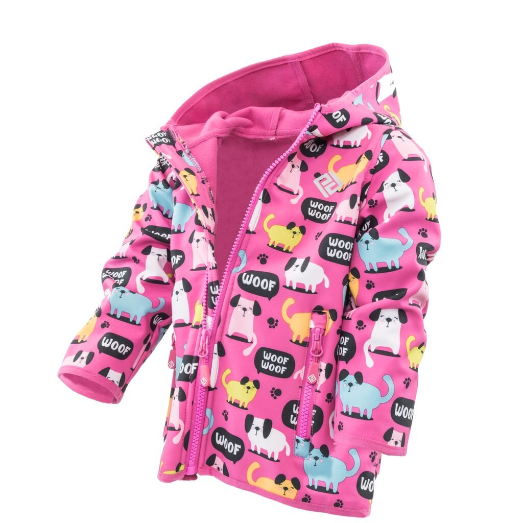 Dětská vysoce voděodolná softshellová bunda v líbivém designu. Bunda má dvě postranní kapsy opatřené zipem, pevnou kapuci a reflexní prvky na zádech a na levé přední straně.