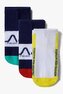 Sada třech párů chlapeckých sportovních ponožek. Každá ponožka je zakončena příjemným žebrovaným otvorem pro větší pohodlí a bezpečné uchycení a kontrastním barevným detailem paty a špičky.Materiál: 75 % bavlna, 23 % nylon, 2 % elastan prečítať celé