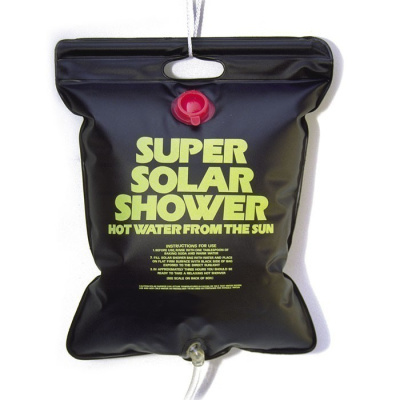 Kempingová solární sprcha Stanování nemusí nutně znamenat přestávku v mytí. Solární sprcha dokáže ohřát během 3 hodin vodu na přijatelných 30 °C. Navíc sprcha zabere minimum místa, protože ji lze srolovat. hlavní znaky solární sprchy objem: 20 L materiál: PVC lze srolovat ideální na stanování, ale i na pláž na opláchnutí poutko na pověšení vysoká efektivita zachycení tepla ohřeje vodu na 30 °C za cca 3 hodiny