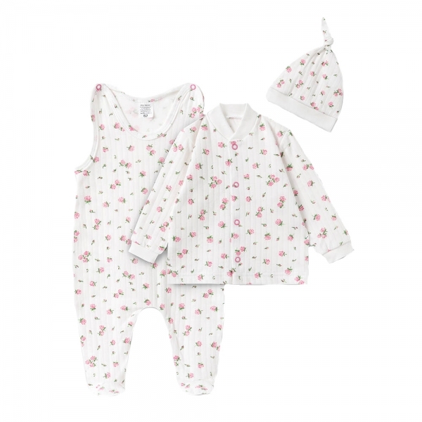 Bavlněná 3D sada, dupačky s košilkou + čepička, Amélie, bílá/růžová, vel. 62; 62 (2-3m)