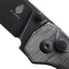 Má čepeľ s hladkou hranou z ocele 154CM s Black Stonewash povrchom, otvára sa palcovým kolíkom a zaisťuje ju zámok tlačidiel Button Lock.