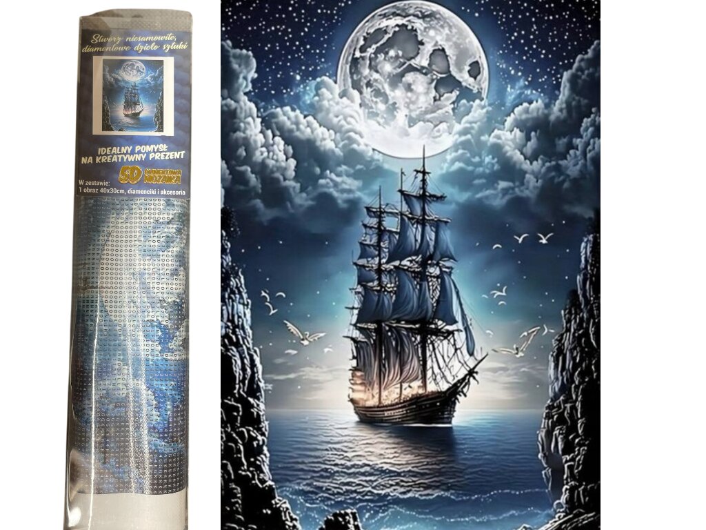Diamantové malování - Loď za svitu měsíce 30 x 40 cm