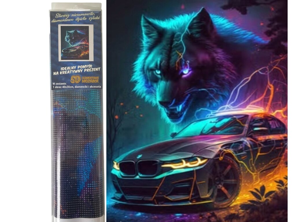 Diamantové malování Vlk s autem 30 x 40 cm