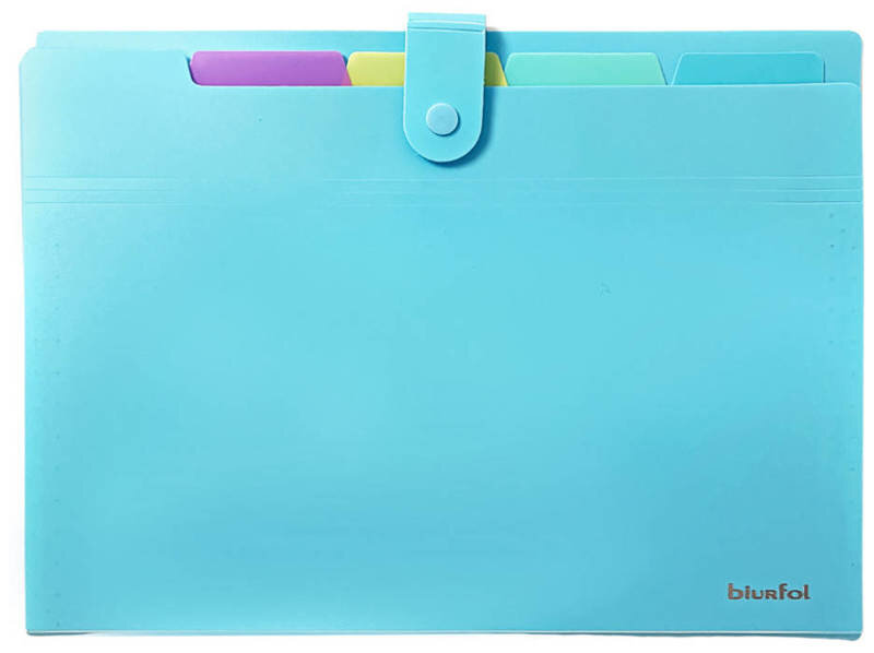 Teczka harmonijkowa A4 PP 5 przegródek pastel niebieska, Biurfol
