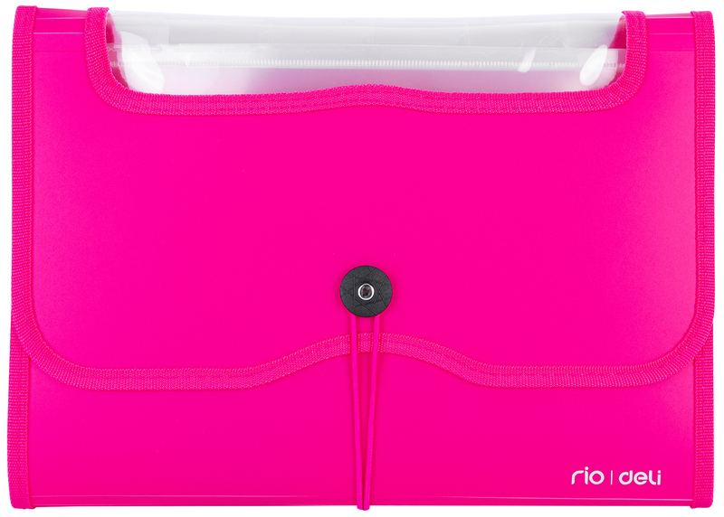 Teczka harmonijkowa z gumką 13-przegródek okno PVC Rio różowa, Deli