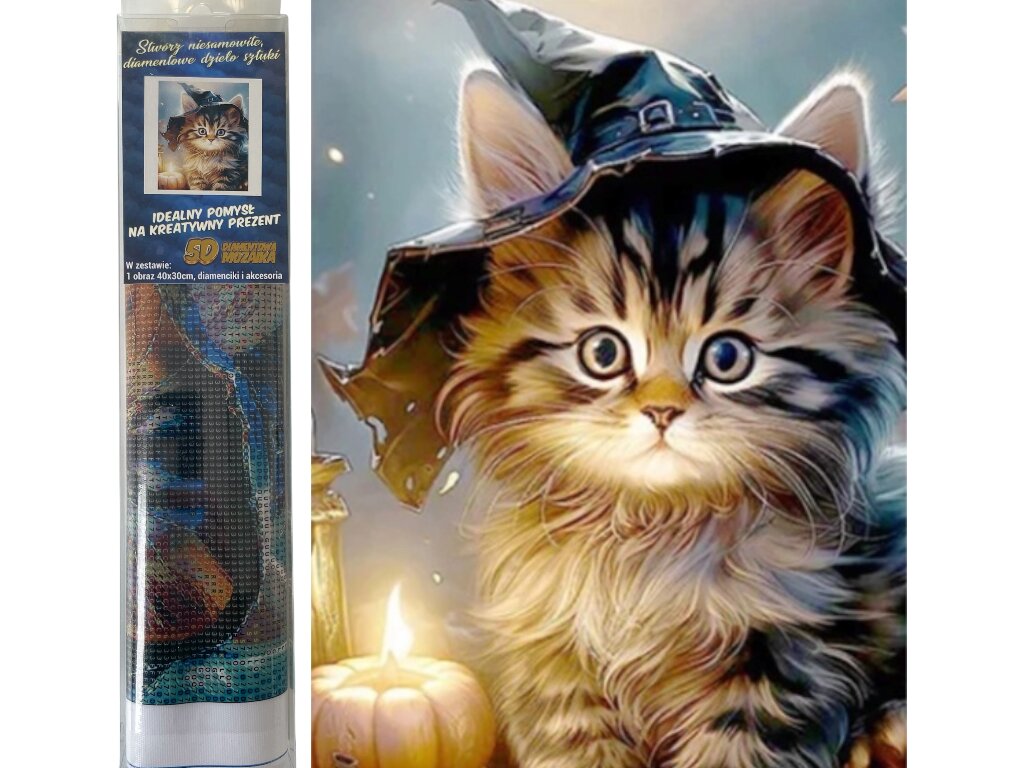 Diamantové malování Kočka v klobouku 30 x 40 cm