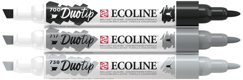 Markery dwustr. okr./ścięty 3-kol. Ecoline Duotip Carno-szary, Talens
