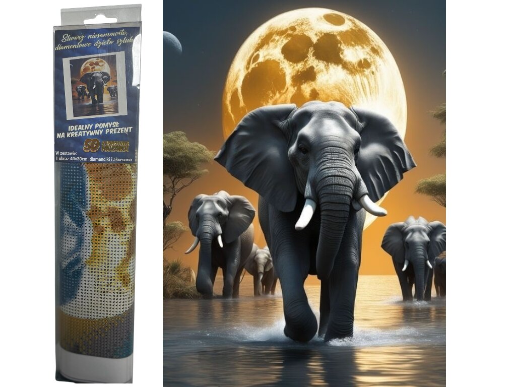 Diamantové malování Sloni pod měsícem 30 x 40 cm