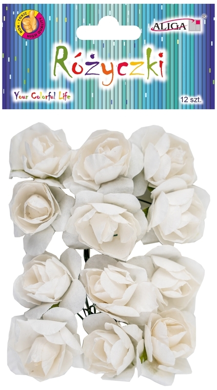 Różyczki na drucikach białe 7cm op. 12szt. PKW-7667, Aliga