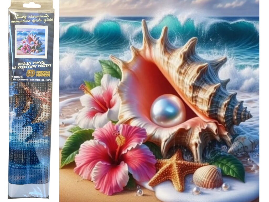Diamantové malování - Mušle s perlou 30 x 40 cm