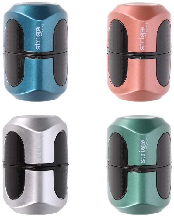 Temperówka metaliczna na 3 grubości ołówków i kredek z pojemnikiem, Strigo