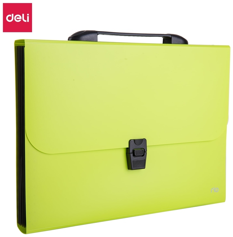 Teczka z rączką czarną A4 7-przegródek Rio zielona, Deli