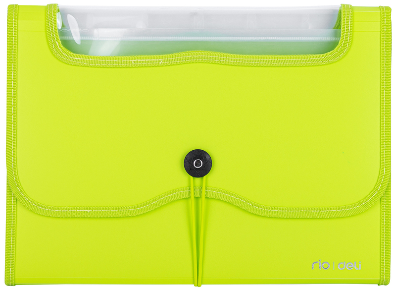 Teczka harmonijkowa z gumką 7-przegródek okno PVC Rio zielona, Deli