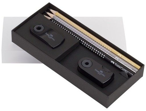 Ołóweki Sparkle zestaw prezentowy 3 szt. czarny, złoty, srebrny + temperówka + gumka, Faber-Castell