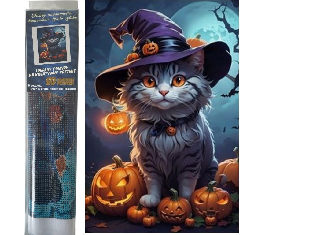 Diamantové malování Kočka a dýně 30 x 40 cm