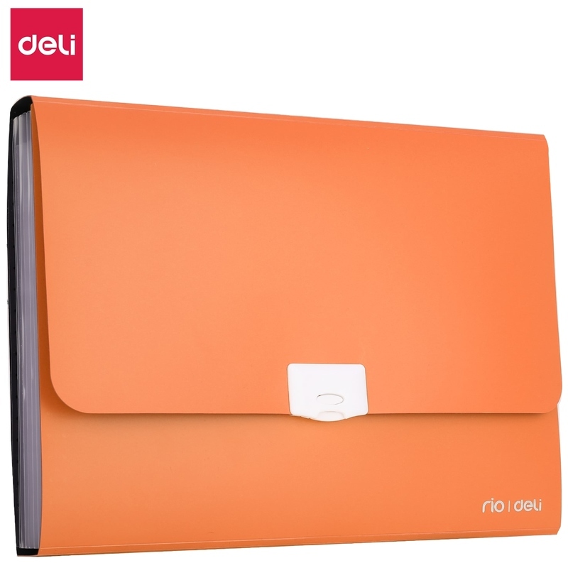 Teczka z rączką białą 7-przegródek Rio pomarańczowa, Deli