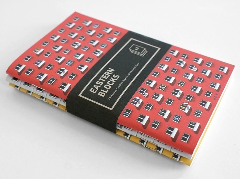 Zestaw 3 notesów inspirowanych modernistycznymi osiedlami byłego Bloku Wschodniego.