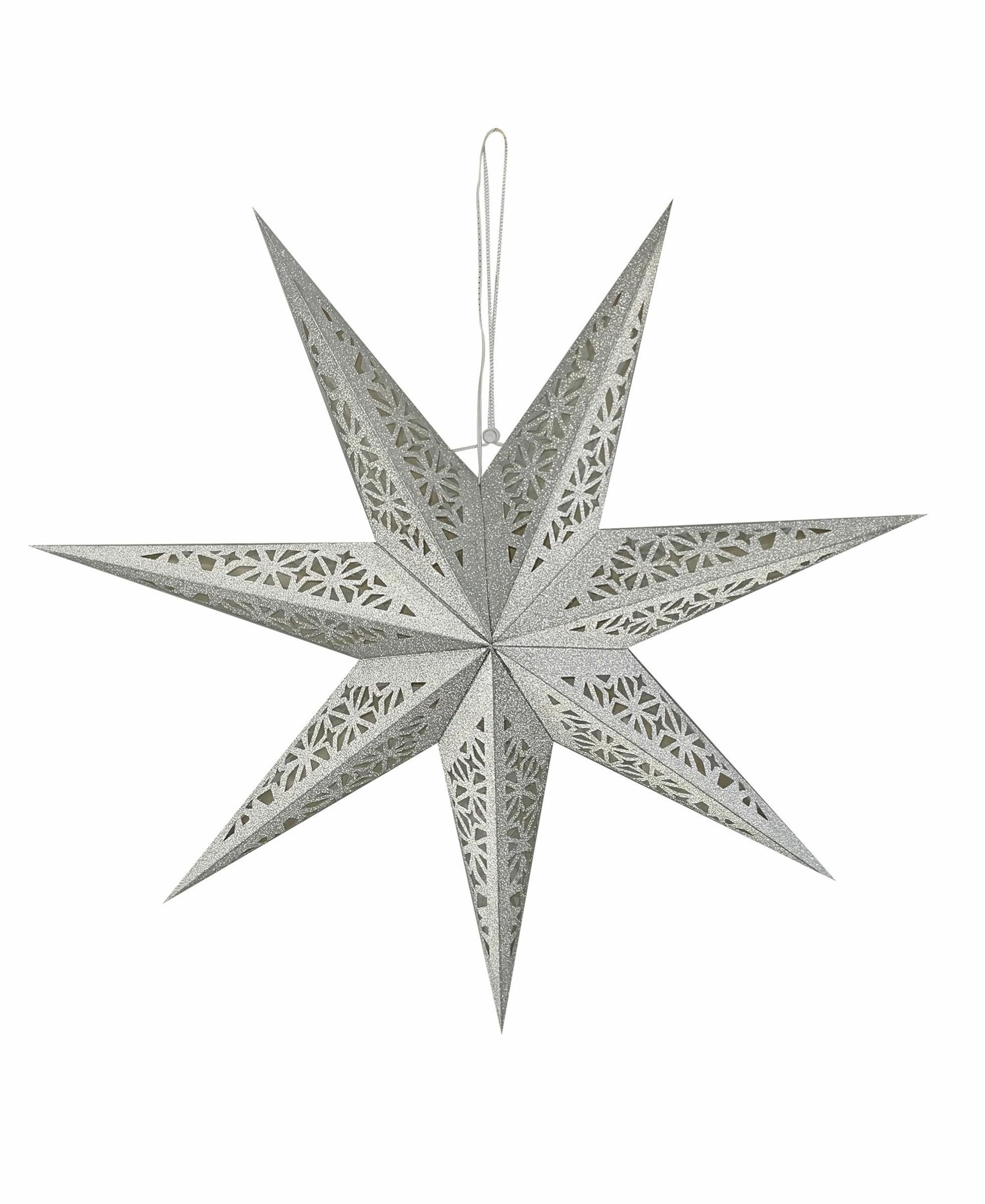 Závěsná svítící LED hvězda CALORE 75 cm stříbrná