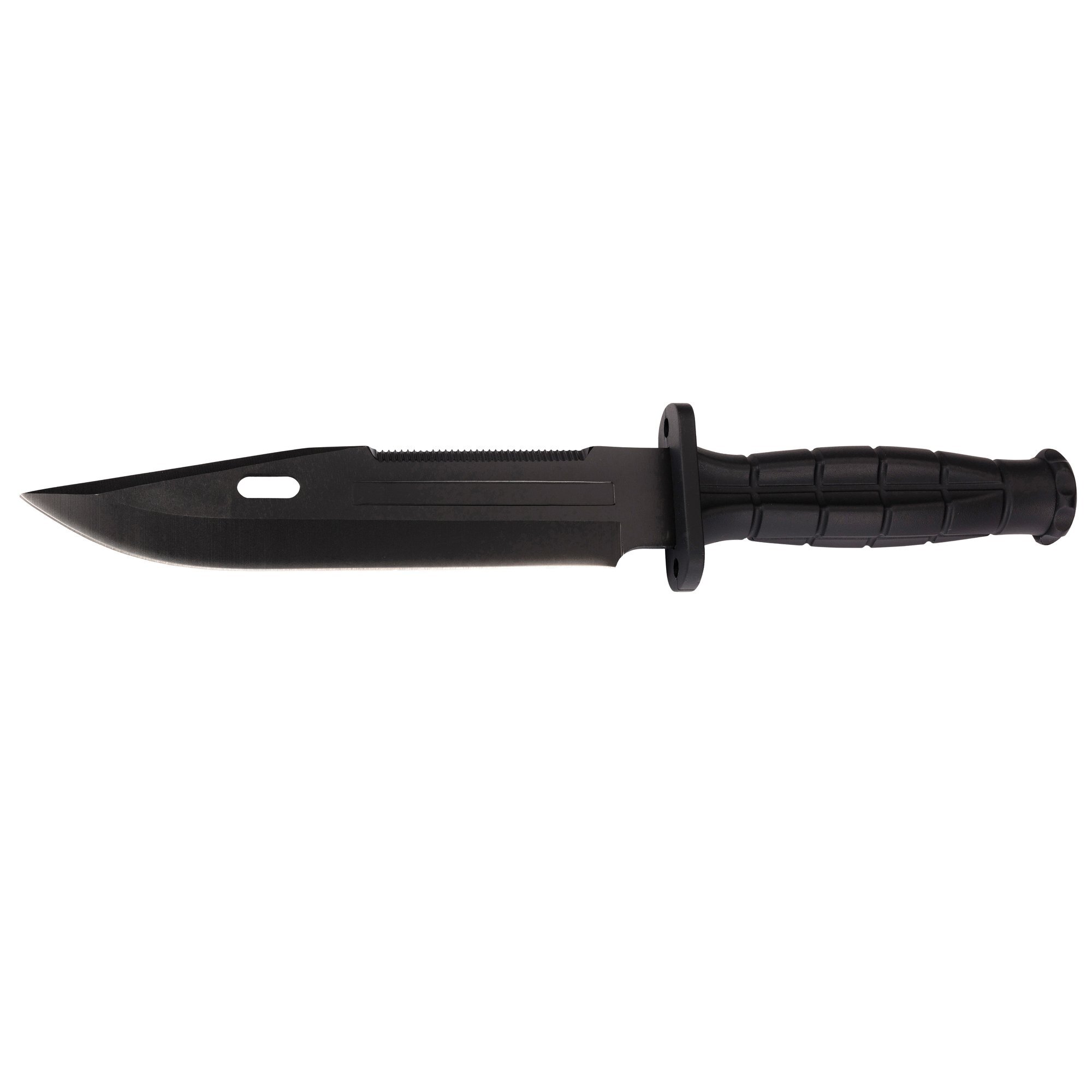 Má pevnú čepeľ s hladkou hranou typu Drop Point z nehrdzavejúcej ocele 440 s čiernou povrchovou úpravou, s praktickým zúbkovaním na zadnej strane.