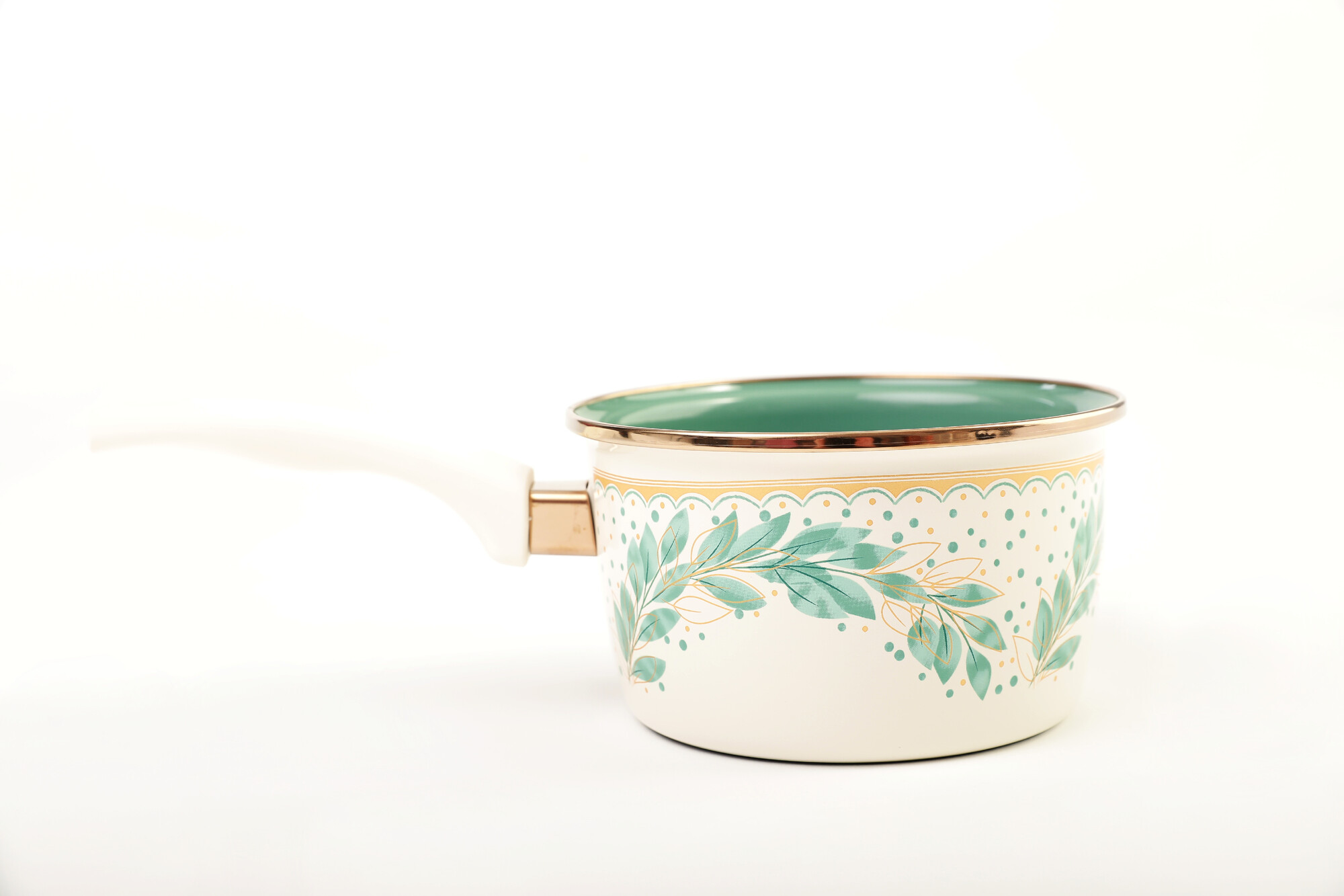 Metalac Exclusive, hluboký rendlík s bakelitovou ručkou bez poklice, 16 cm, 1,9 lLuxusní smaltované nádobí nejvyšší jakosti. Nádobí je ozdobeno nádherným obtiskem lístků s přidanými prvky ve zlaté barvě. Obtisk krásně ladí s kování a nerezovými ráfky, které jsou taktéž ve zlatém...