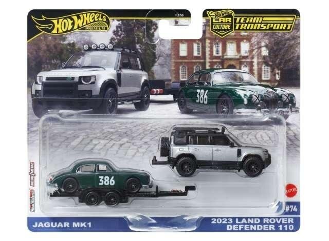 Ten zestaw Hot Wheels Team Transport zawiera dwa wspaniałe, odlewane samochody, Jaguara MK 1 z 2024 r. i Land Rovera Defendera 110 z 2023 r., oba w eleganckim srebrnym kolorze. Te modele w skali 1:64 są idealne dla każdego entuzjasty samochodów, krajowego i zagranicznego. Zestaw nie zawiera...
