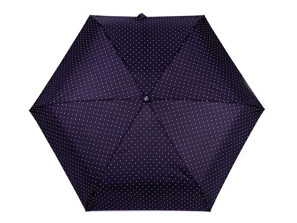 Skládací deštník s puntíky je díky hliníkové konstrukci a malé velikosti lehký a skladný, pohodlně se vám vejde do kabelky.