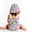 Nádherný klobouček vyrobený z měkké tkaniny obsahující SPF50+ (chrání před UV zářením). Nádherný klobouček vyrobený z měkké tkaniny obsahující SPF50+ (chrání před UV zářením).Krempu lze nosit směrem nahoru i dolů (více stíní).Vyrobeno z rychleschnoucího materiálu.Obvod hlavy 46, 50 a 52 cm