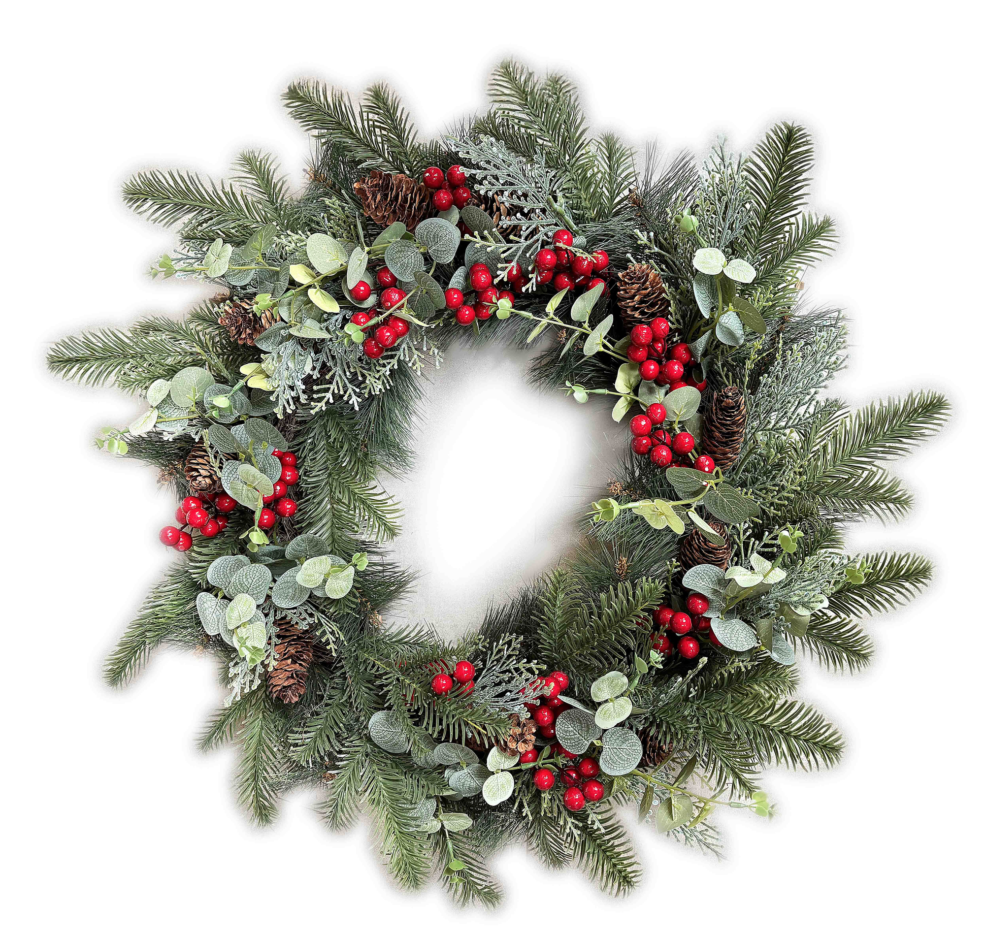 Stwórz wyjątkową atmosferę w swoim domu dzięki wiankowi z kolekcji VIRIDIS, ozdobionemu ostrokrzewem i eukaliptusem. Ten elegancki wianek o średnicy 50 cm to idealny wybór na świąteczne dekoracje, które wprowadzą do Twojego wnętrza magię Bożego Narodzenia i naturalny urok.Cechy produktu:...