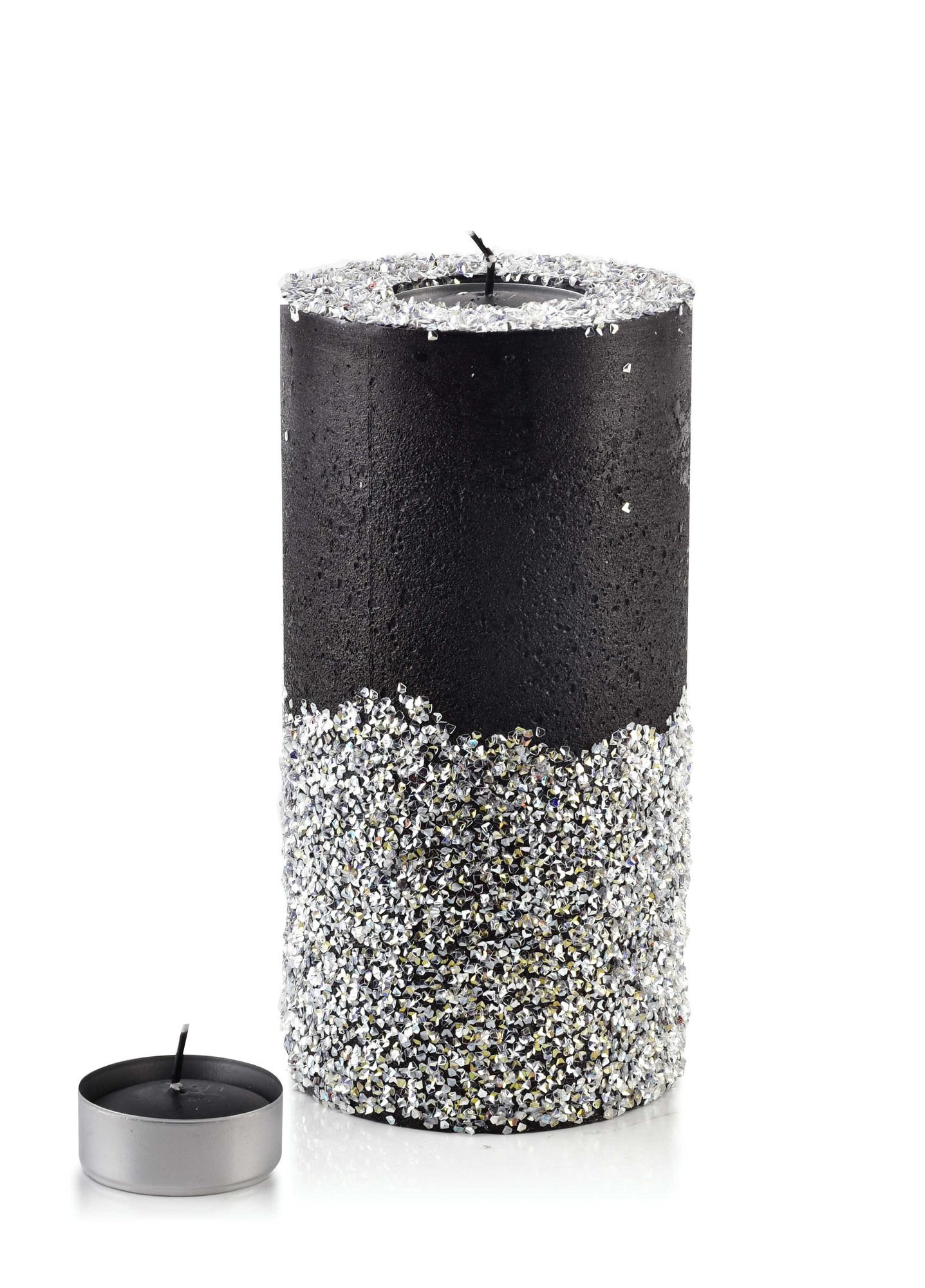 ŚWIECA LAMPION WALEC 120X240 DIAMENT CZARNY SREBRNE KRYSZTAŁKI