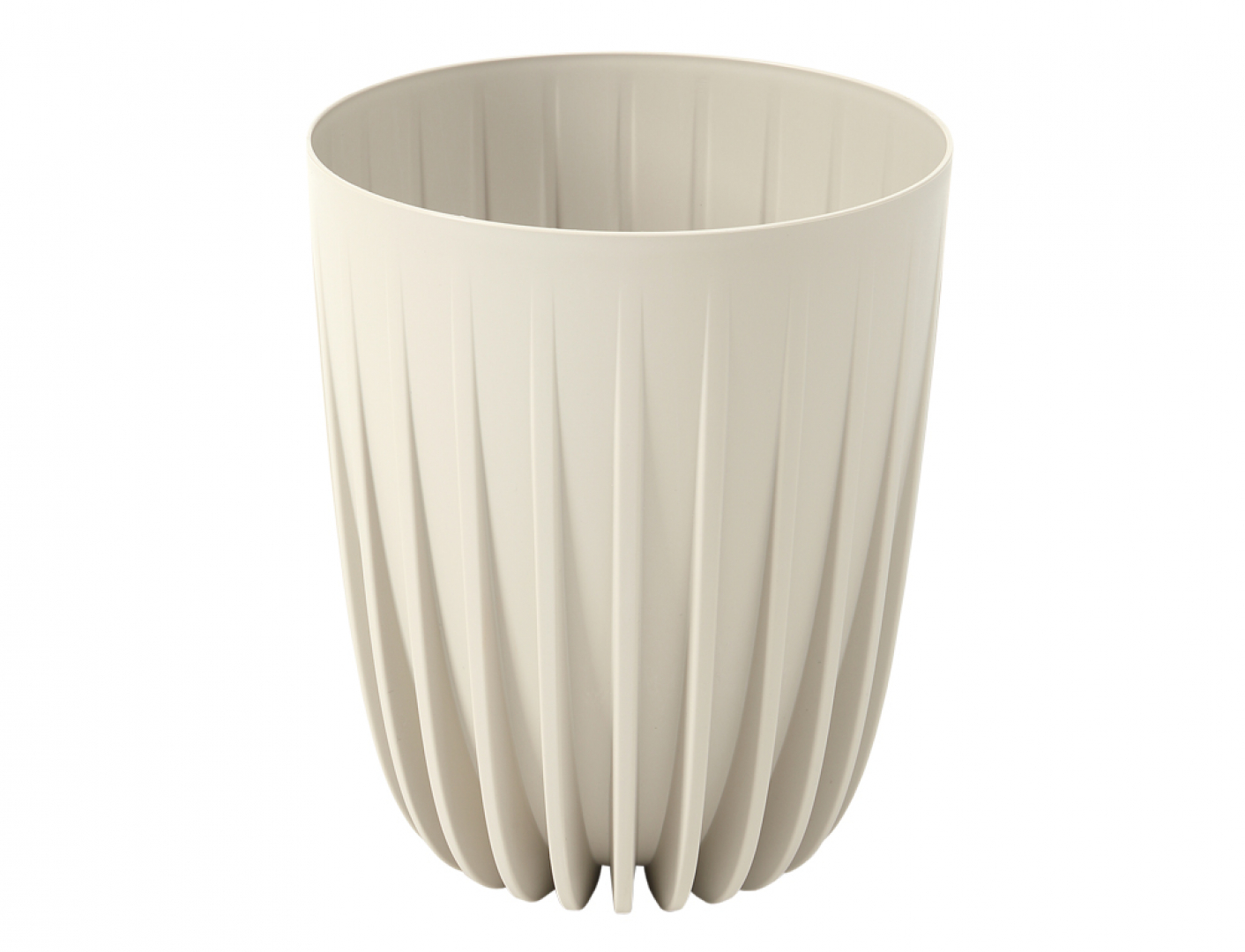 Matný plastový obal na květník s originálním vzhledem svislých pruhů od spodu na horu se vytrácejí. Součástí je vnitřní vložka. Barvy jsou odolné vůči UV záření. Obal je 100 % recyklovatelný a vhodný do interiéru. Průměr: 25 cm, výška: 30 cm. Barva: béžová. prečítať celé