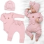 Žebrovaná rostoucí souprava 3D, Baby Girl - pudrově růžová; 56/62 (0-3m)