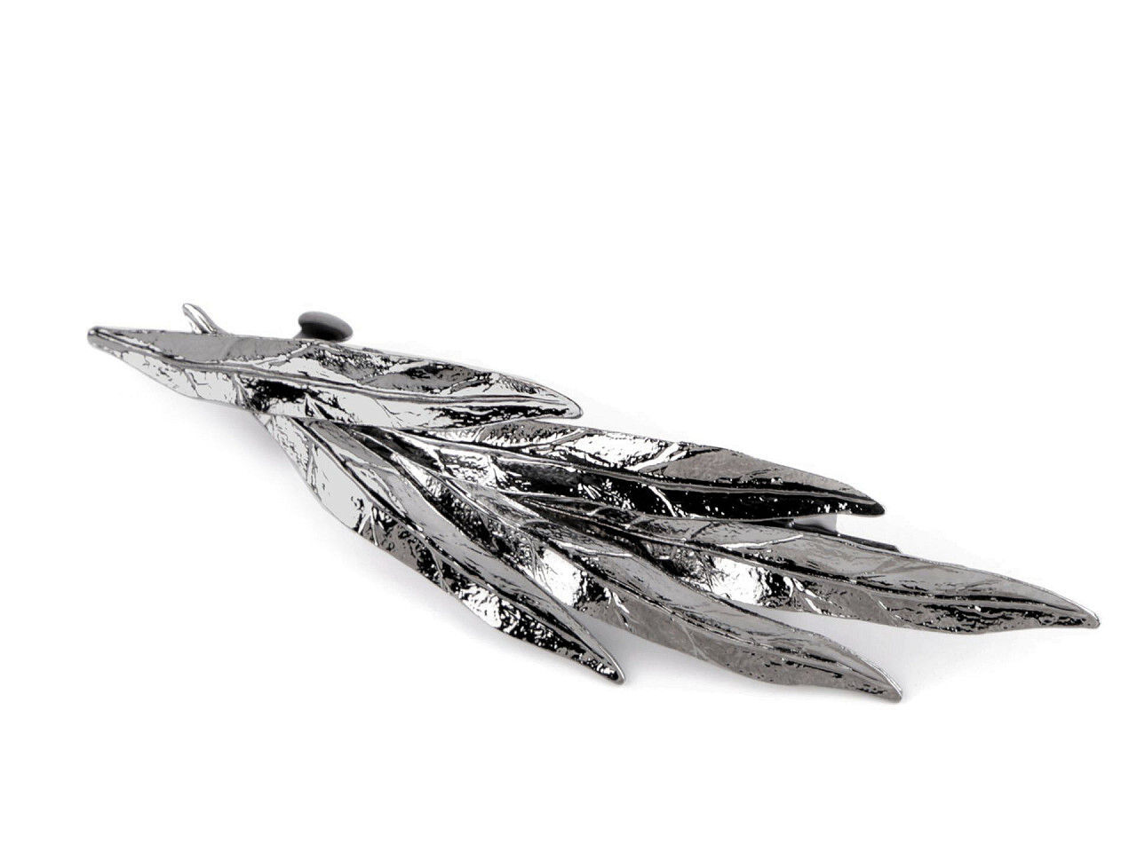 Francouzská spona do vlasů listy - 1 ks - 3 šedá ocelová