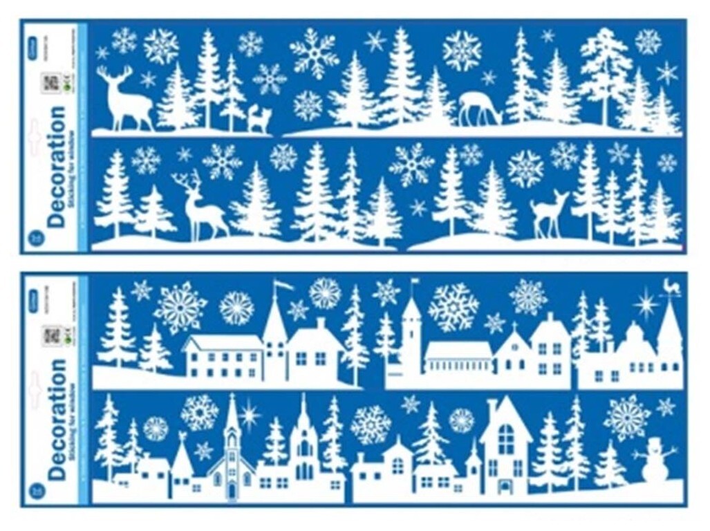 Okenní fólie 210x595mm, zimní krajina, vesnice mix, bílá