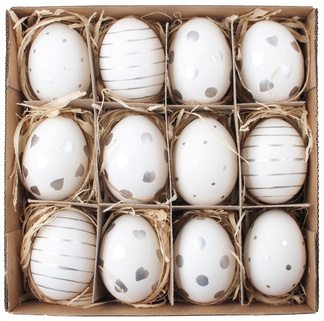 Vajíčka plastová se stříbrným zdobením 6 cm, 12 ks v krabičce